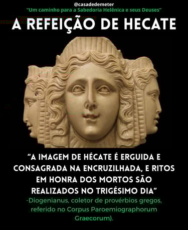 “A imagem de Hécate é erguida e consagrada na encruzilhada, e ritos em honra dos mortos são realizados no trigésimo dia”. (Diogenianus, referido no Corpus Paroemiographorum Graecorum).